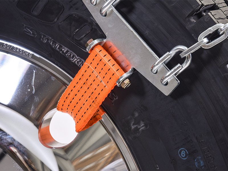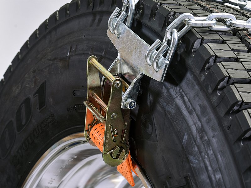 雪道でタイヤがスタックした際の緊急脱出用として効果を発揮するワンタッチ装着チェーン。